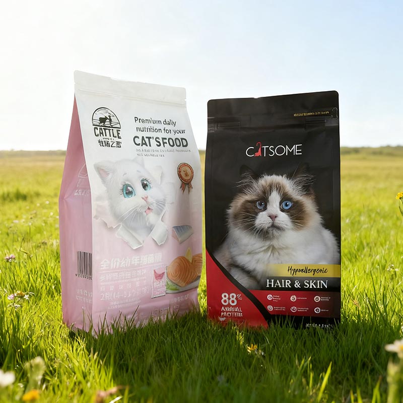 Jindes ångkokta kattmatsförpackningspåse är gjord av flera lager av högkvalitativa material. Det yttersta lagret